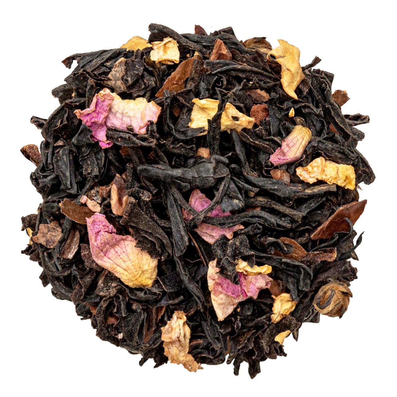 嚴選有機阿薩姆紅茶,濃郁可可香氣交織柔和玫瑰花韻,入口香醇順滑。富含抗氧化成分的茶與巧克力相得益彰,可加入牛奶享用,如甜點般奢華,同時帶來健康與愉悅。